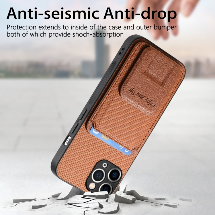 Funda para Teléfono iPhone 11 Pro con Soporte Plegable y Bolsa para Tarjetas Fibra de Carbono (Marrón)