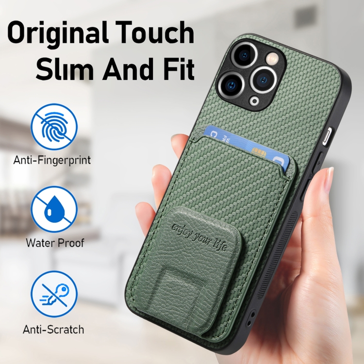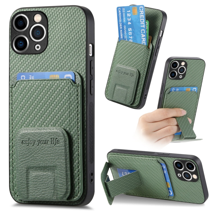 Funda para Teléfono iPhone 11 Pro con Soporte Plegable y Bolsa para Tarjetas de Fibra de Carbono (Verde)