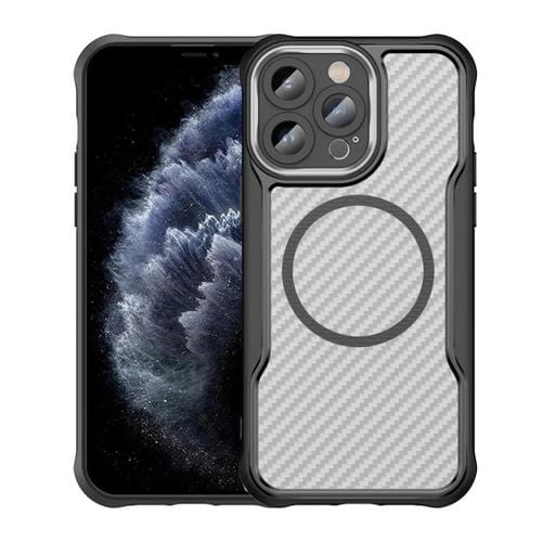 Funda para Teléfono iPhone 11 Pro Translúcida Magsafe con Textura de Fibra de Carbono (Negro)