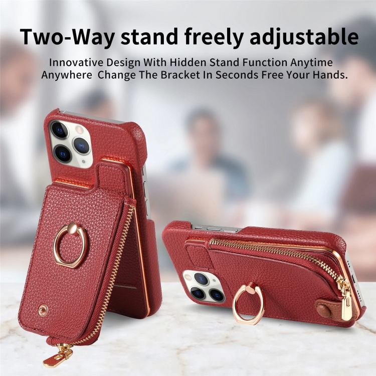 Funda Trasera iPhone 11 Pro Billetera Cremallera Anillo Cuero Litchi (Rojo)