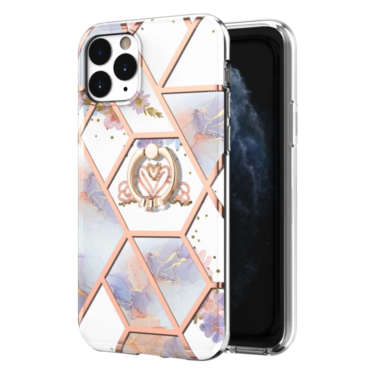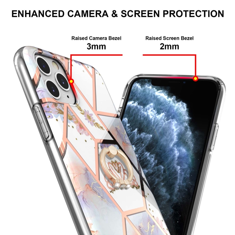 Estuche TPU para iPhone 11 Pro Galvanoplastia Empalme Mármol Patrón Flores Soporte Anillo (Corona Imperial)