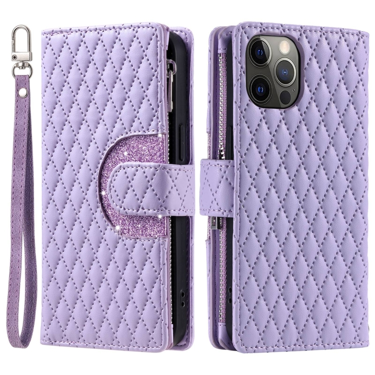 Funda para Teléfono iPhone 11 Pro Glitter Lattice Zipper Wallet Cuero (Púrpura)