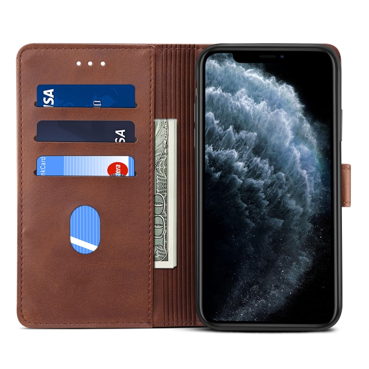 Estuche de Cuero Gussim para iPhone 11 Pro con Tapa Horizontal Magnética Soporte Ranuras Tarjetas Billetera (Marrón)