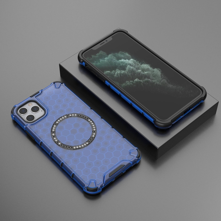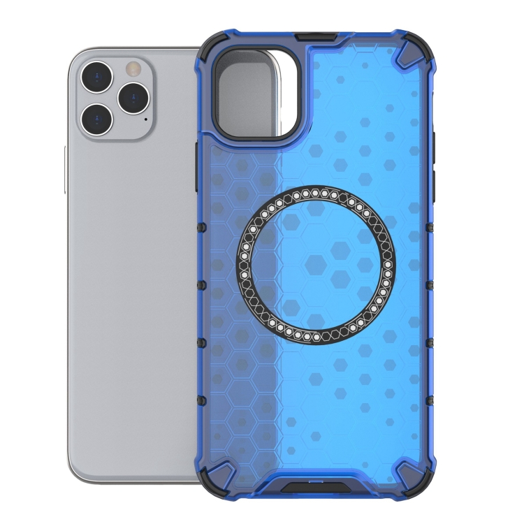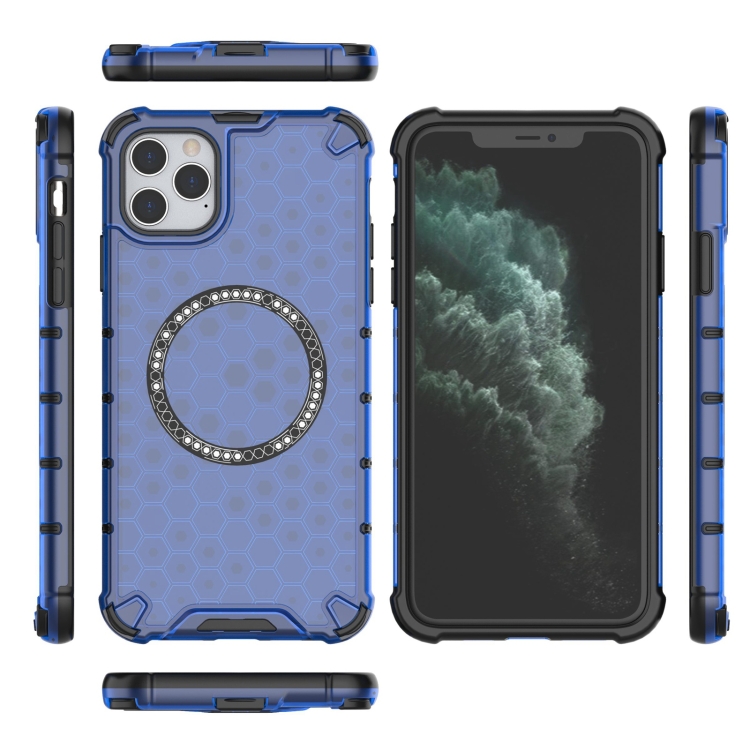 Funda para Teléfono iPhone 11 Pro Honeycomb Magnetic Ring a Prueba de Golpes (Azul)