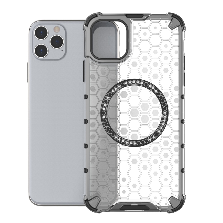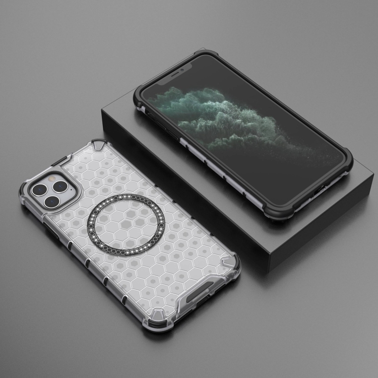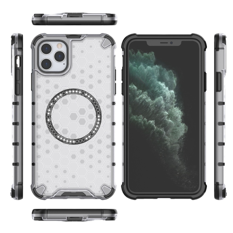 Funda para teléfono iPhone 11 Pro Honeycomb Magnetic Ring a prueba de golpes (Blanco)