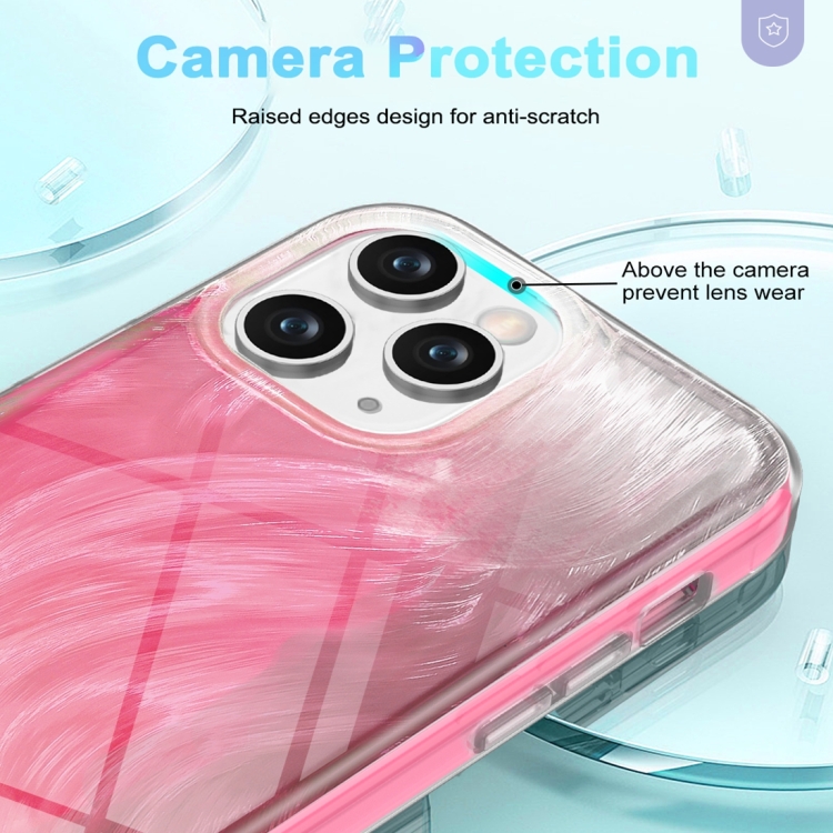Funda para iPhone 11 Pro Max 2 en 1 Imd Gradient Feather PC y TPU (Rojo Rosa)