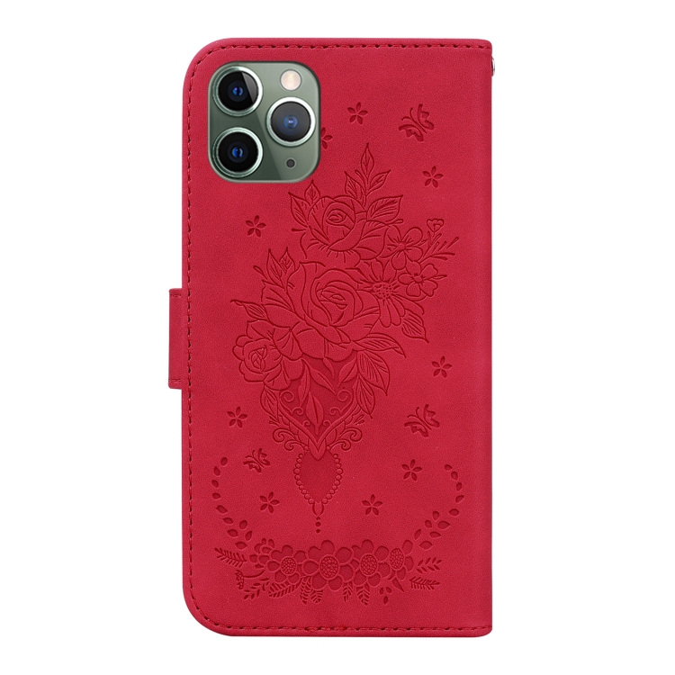 Funda para iPhone 11 Pro Max Butterfly Rose Cuero En Relieve (Rojo)