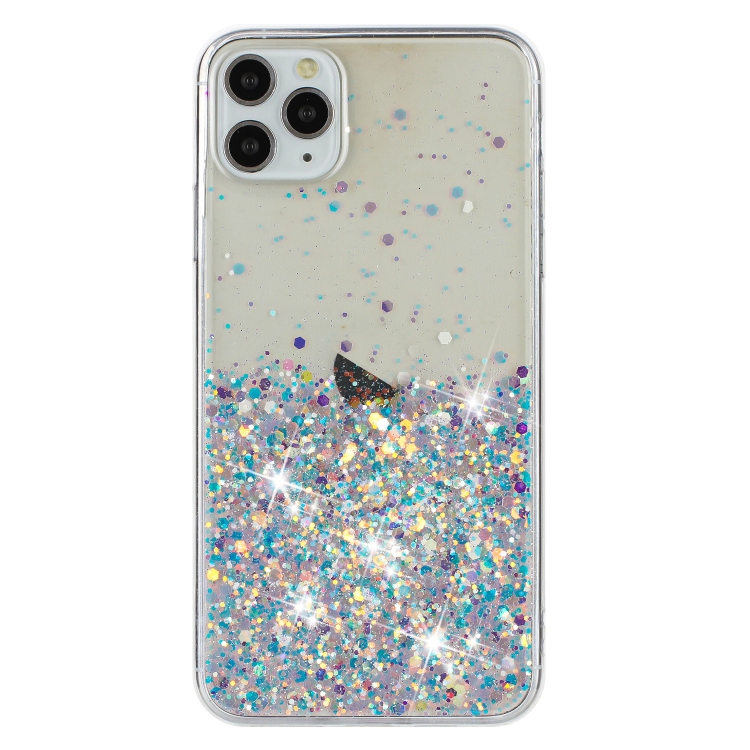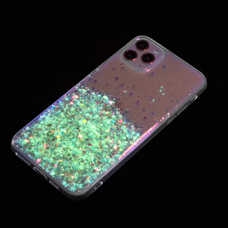 Funda para iPhone 11 Pro Max TPU con Polvo de Brillo Noctilucente y Marco Transparente (Blanco)