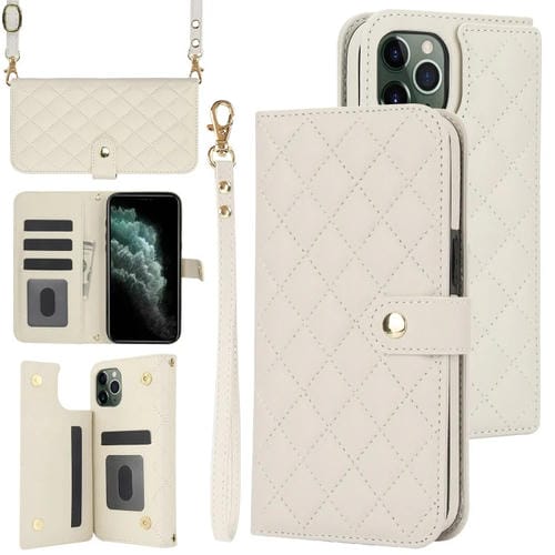 Estuche para Teléfono iPhone 11 Pro Max Crossbody Cuero Rómbico Multifunción (Blanco)