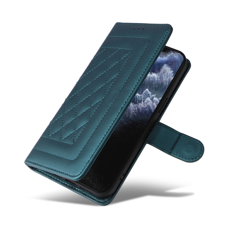 Funda para iPhone 11 Pro Max Diamond Lattice de Cuero con Tapa (Verde)