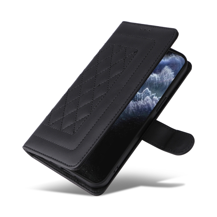 Funda para iPhone 11 Pro Max Diamond Lattice de Cuero con Tapa (Negro)