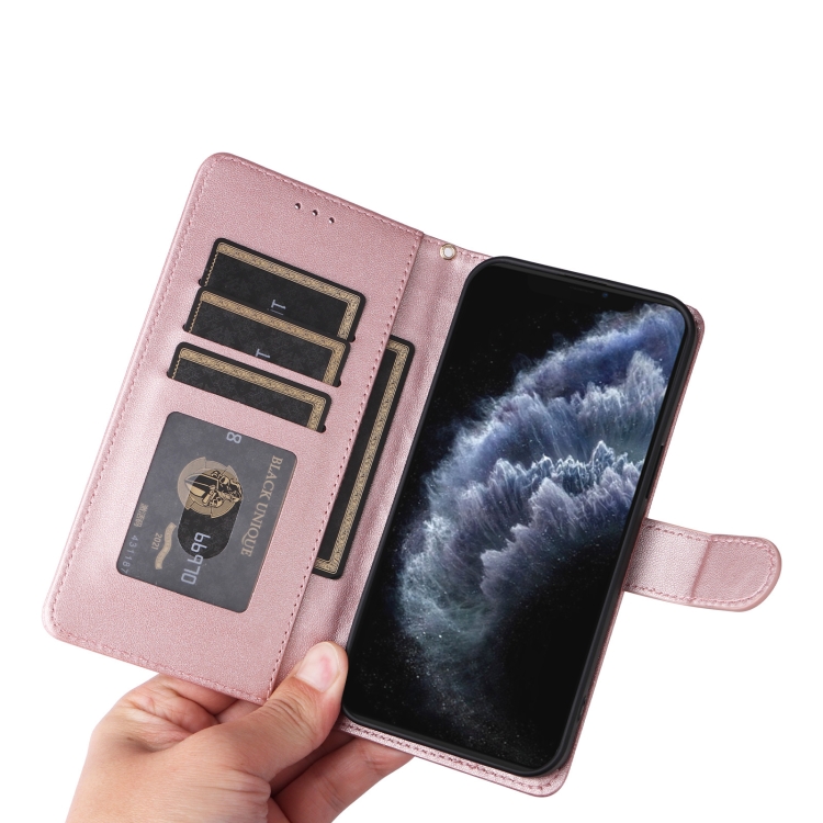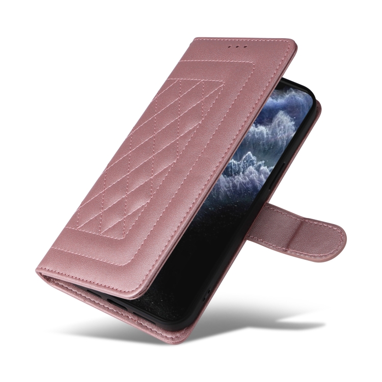 Funda para iPhone 11 Pro Max Diamond Lattice de Cuero con Tapa (Oro Rosa)