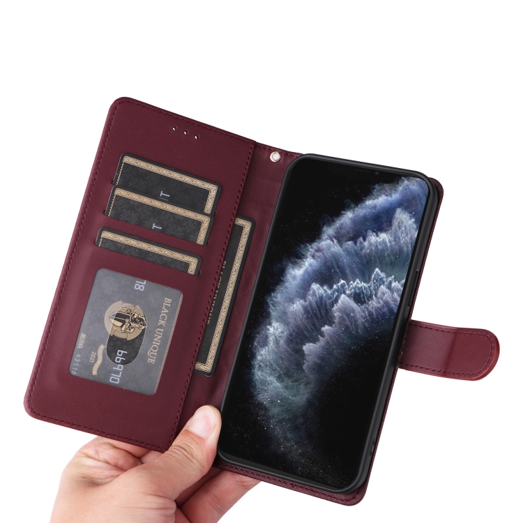 Funda para iPhone 11 Pro Max Diamond Lattice Cuero con Tapa (Rojo Vino)