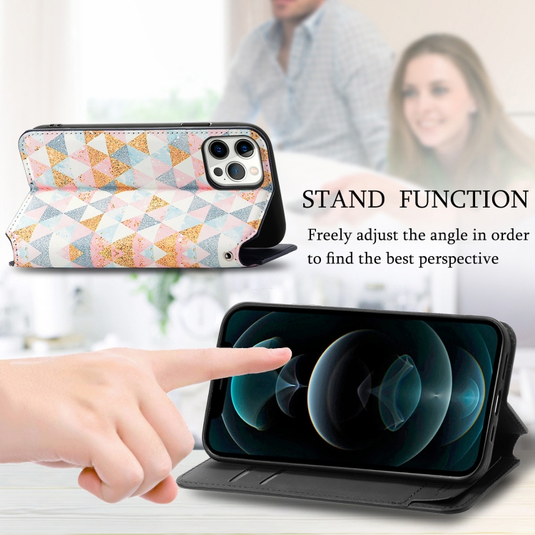 Funda para iPhone 11 Pro Max Cuero de Pu Tapa Horizontal Magnética Soporte Ranuras Tarjetas Billetera (Rombo Nórdico)