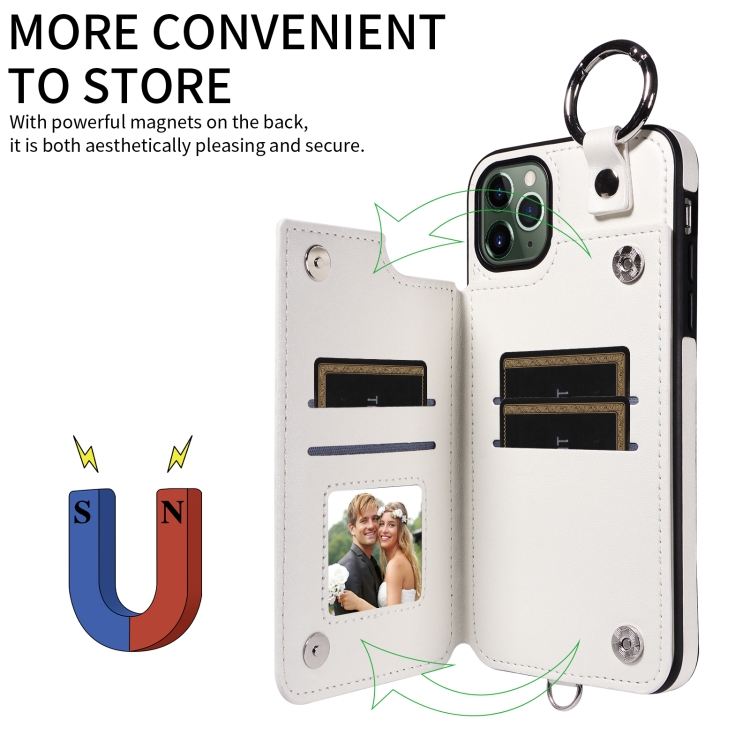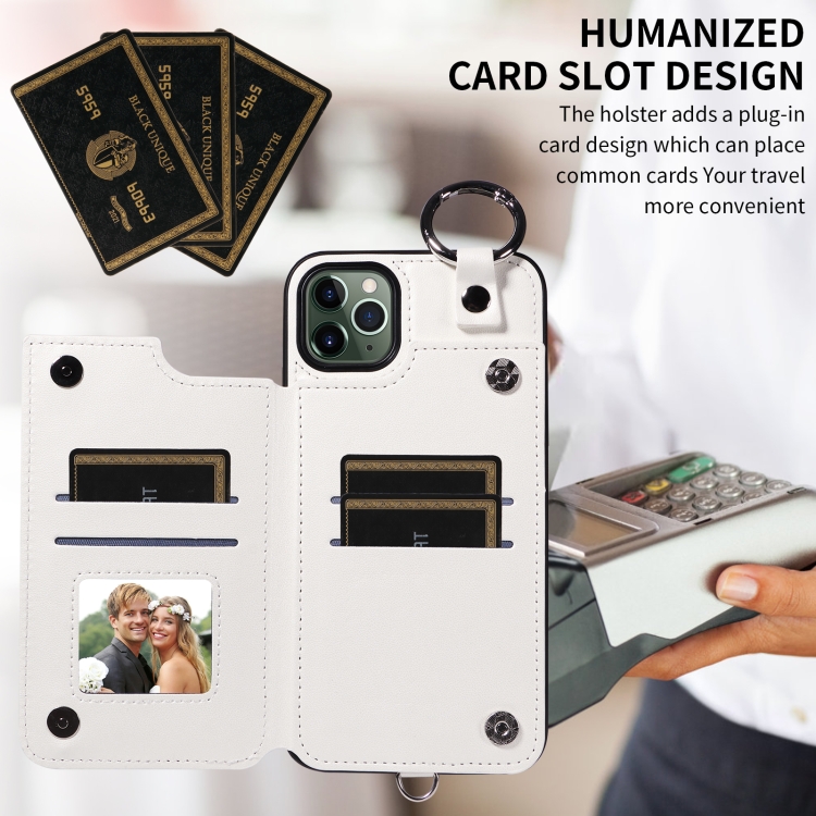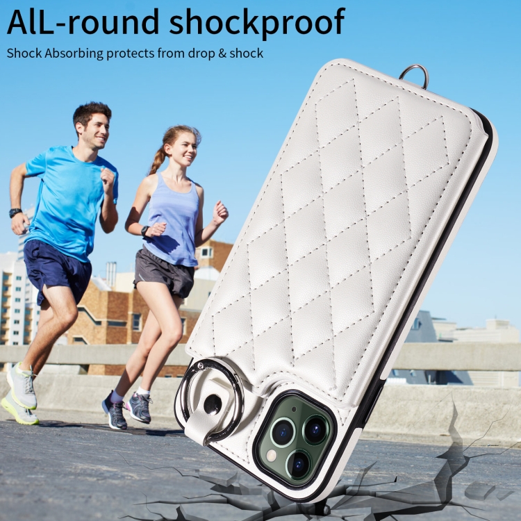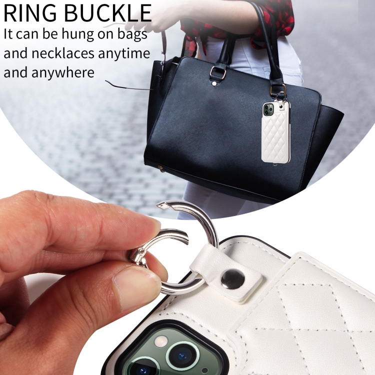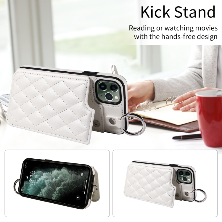 Estuche para Teléfono iPhone 11 Pro Max Bolsa para Tarjetas Textura Rómbica Cordón Corto (Blanco)