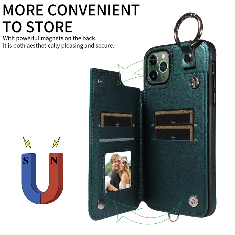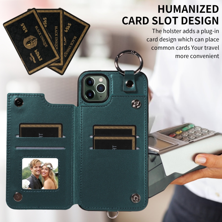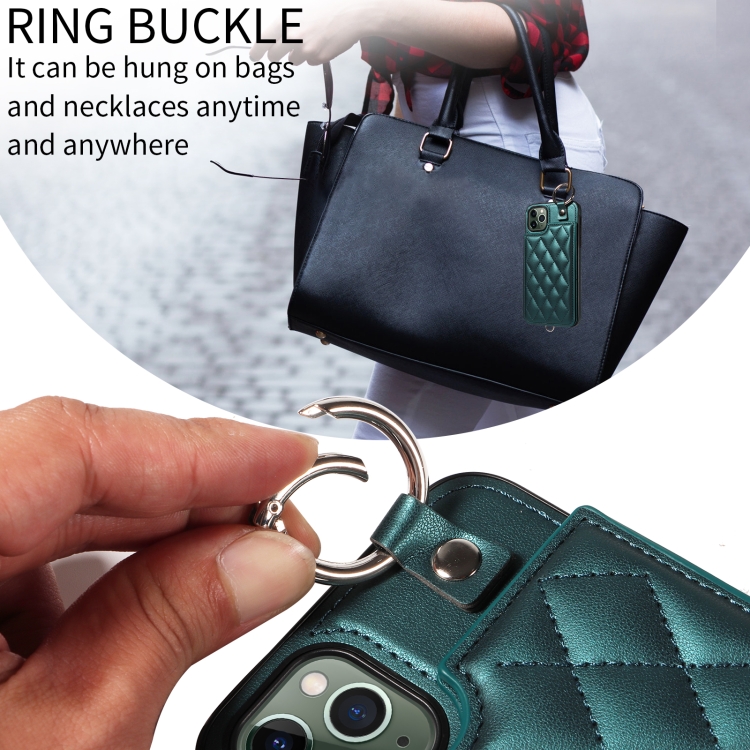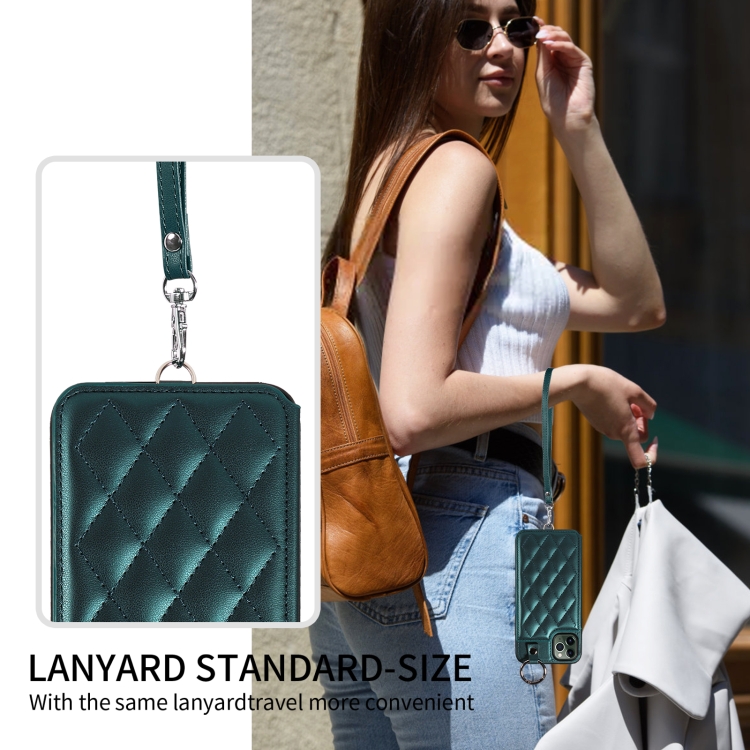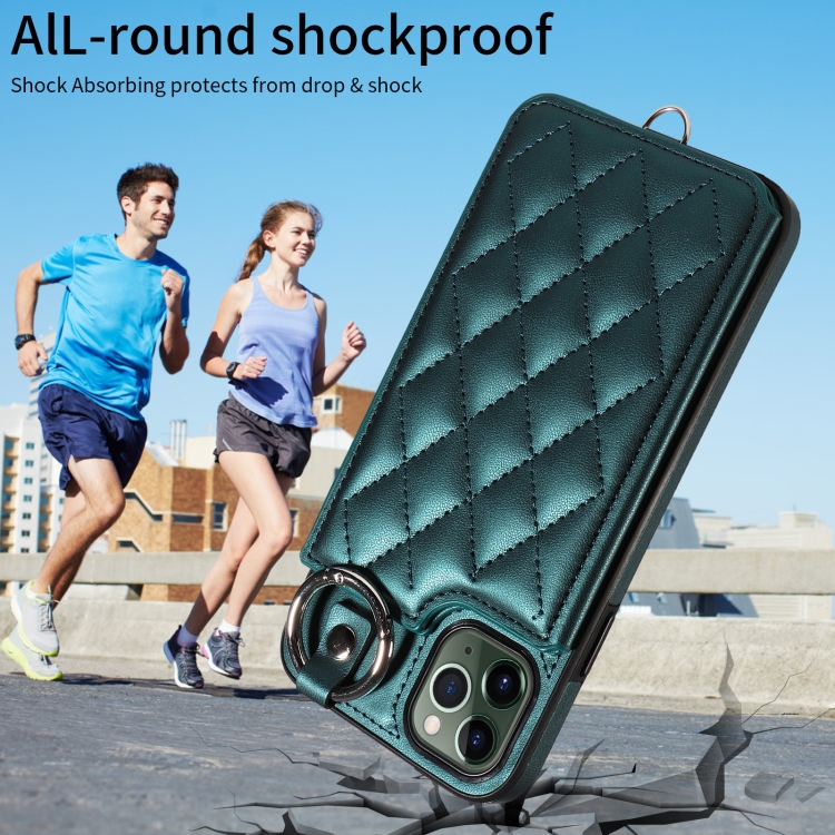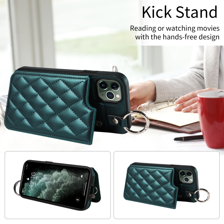 Estuche para teléfono iPhone 11 Pro Max con bolsa para tarjetas textura rómbica y cordón corto (Verde)