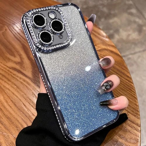 Estuche para Teléfono TPU iPhone 11 Pro Max Brillo Degradado de Diamante (Azul Degradado)