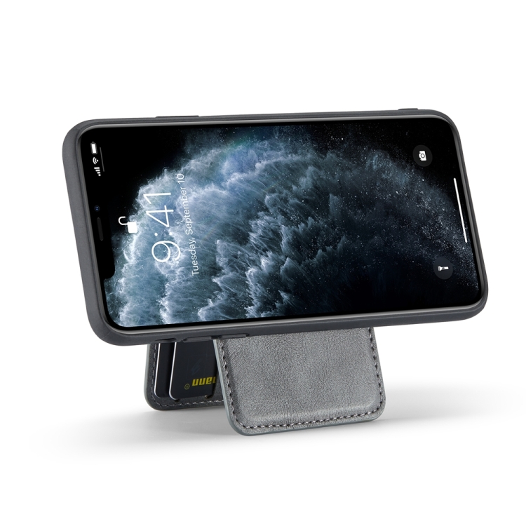 Funda para Teléfono Fierre Shann iPhone 11 Pro Max Oil Wax con Tarjetero Magnético de Cuero de Vaca (Gris)
