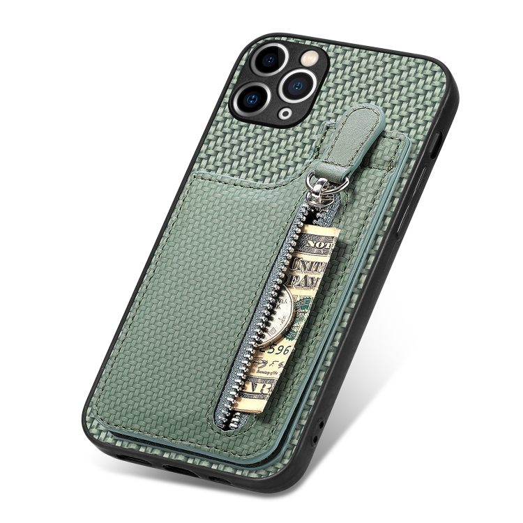 Funda de teléfono iPhone 11 Pro Max con cremallera vertical fibra de carbono (Verde)