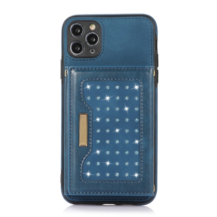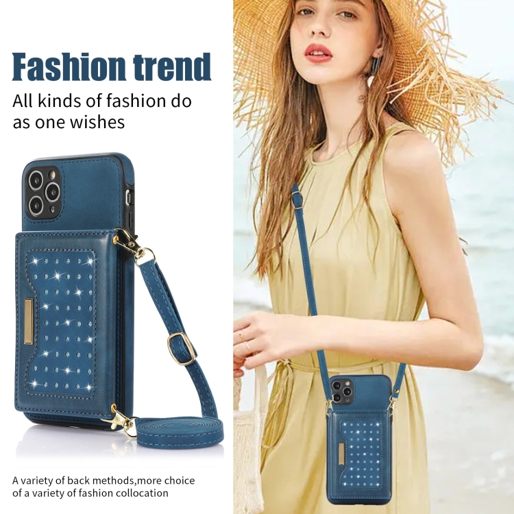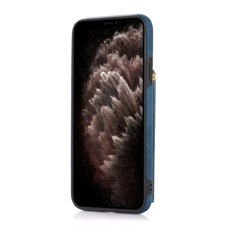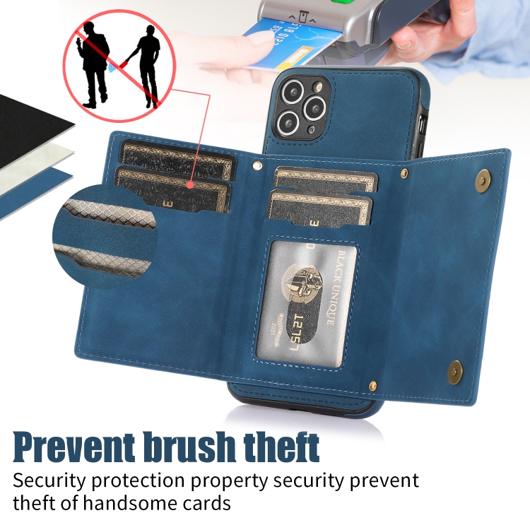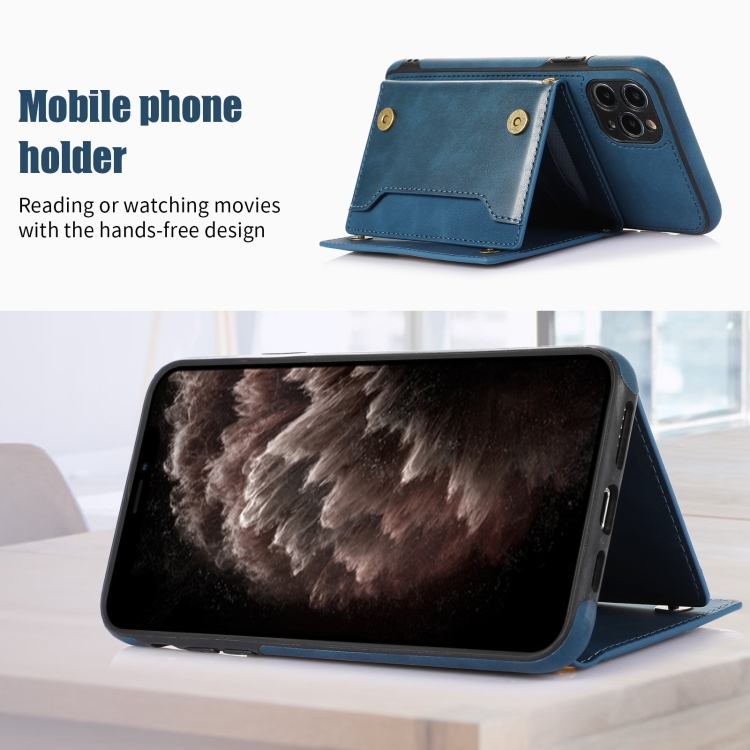 Funda de Teléfono iPhone 11 Pro Max Cuero Rfid Tres Pliegues con Cordón (Azul)