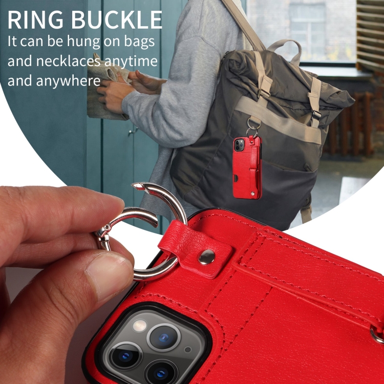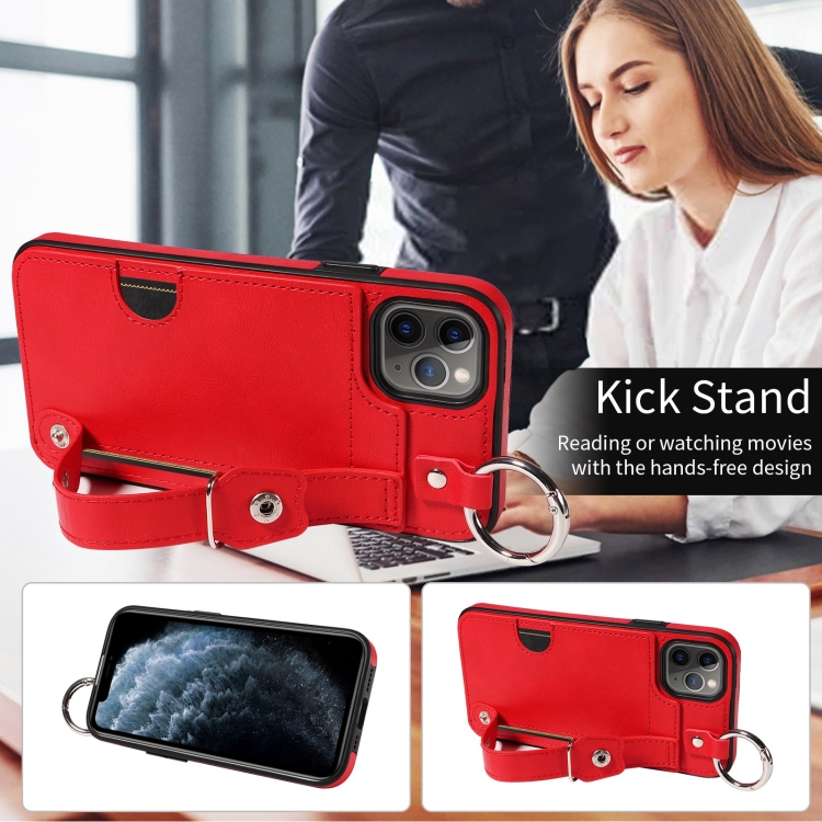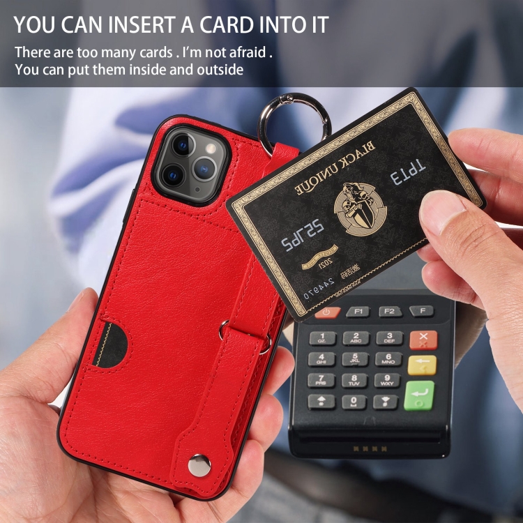 Funda para teléfono iPhone 11 Pro Max con anillo y ranura para tarjeta (Rojo)