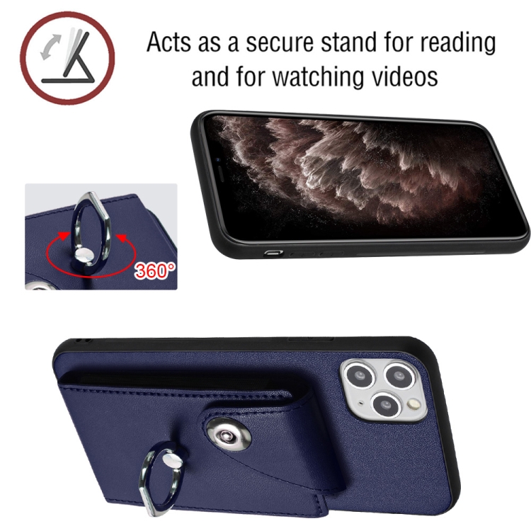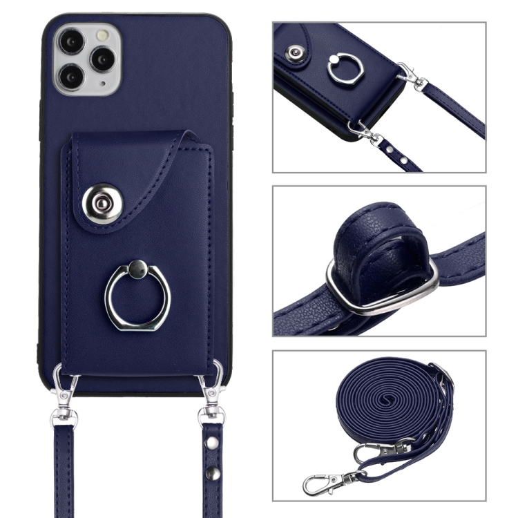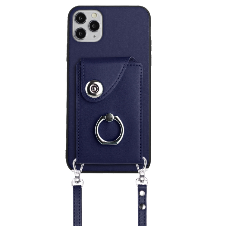 Funda para Teléfono iPhone 11 Pro Max con Soporte para Anillo y Bolsa para Tarjeta con Cordón Largo (Azul)