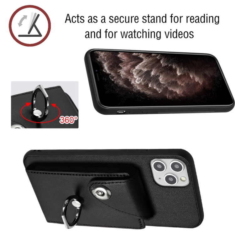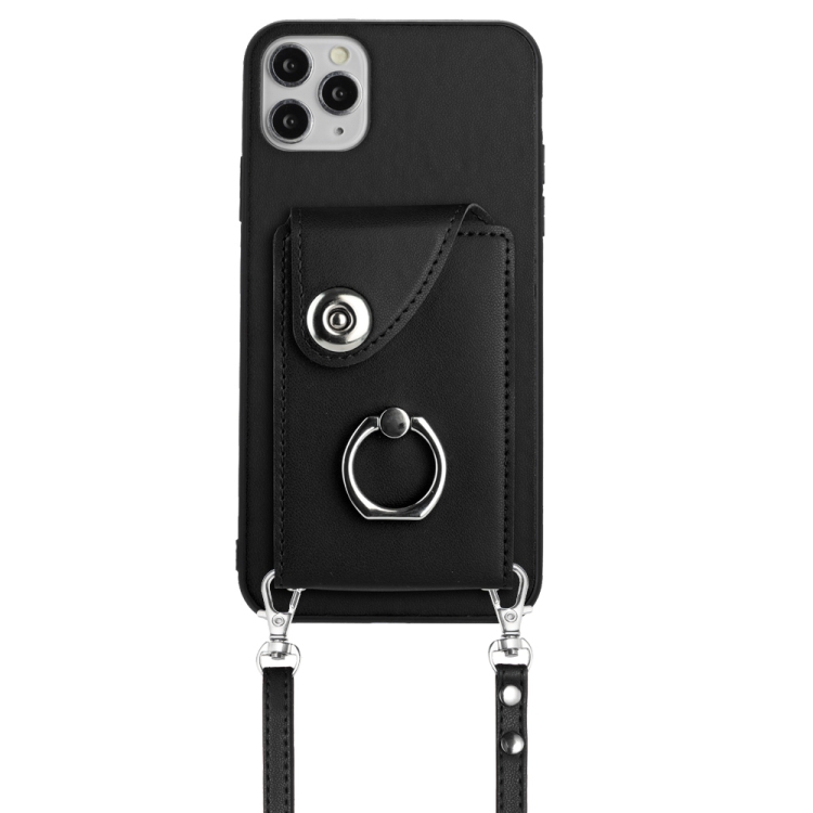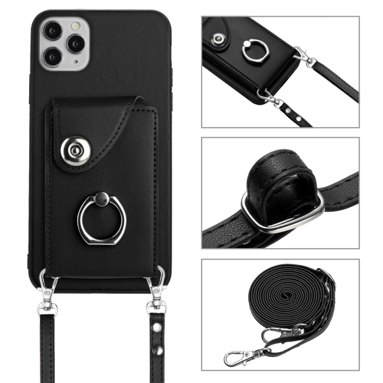 Funda para Teléfono iPhone 11 Pro Max con Soporte para Anillo y Bolsa para Tarjeta con Cordón Largo (Negro)