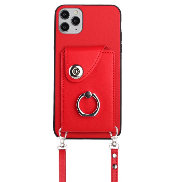 Funda para Teléfono iPhone 11 Pro Max con Soporte para Anillo y Bolsa para Tarjeta con Cordón Largo (Rojo)