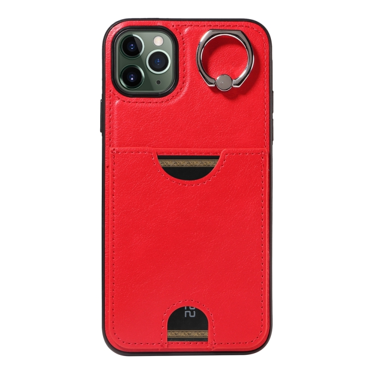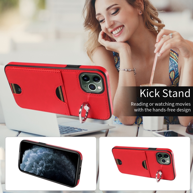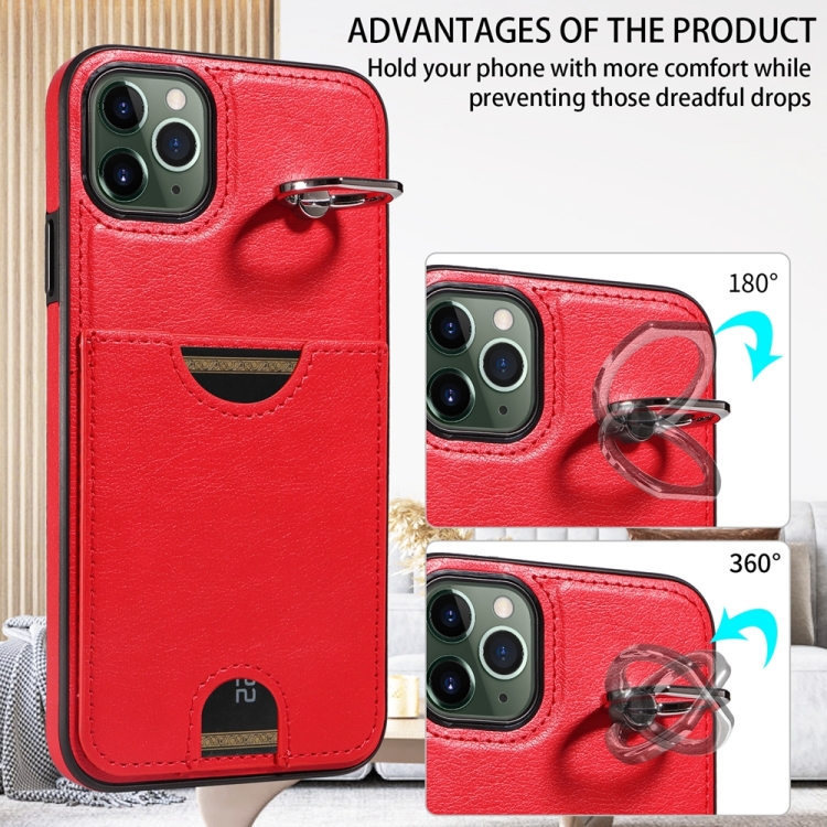 Funda para Teléfono iPhone 11 Pro Max con Soporte para Anillo y Ranura para Tarjeta (Rojo)