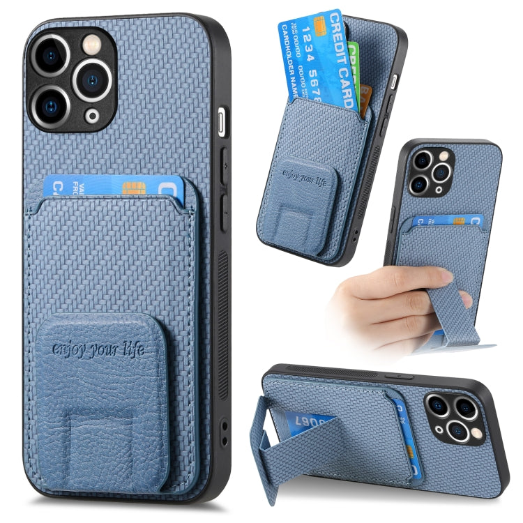 Funda para Teléfono iPhone 11 Pro Max con Soporte Plegable y Bolsa para Tarjetas Fibra de Carbono (Azul)