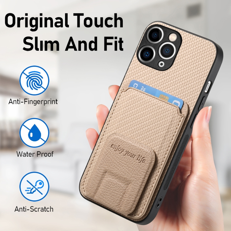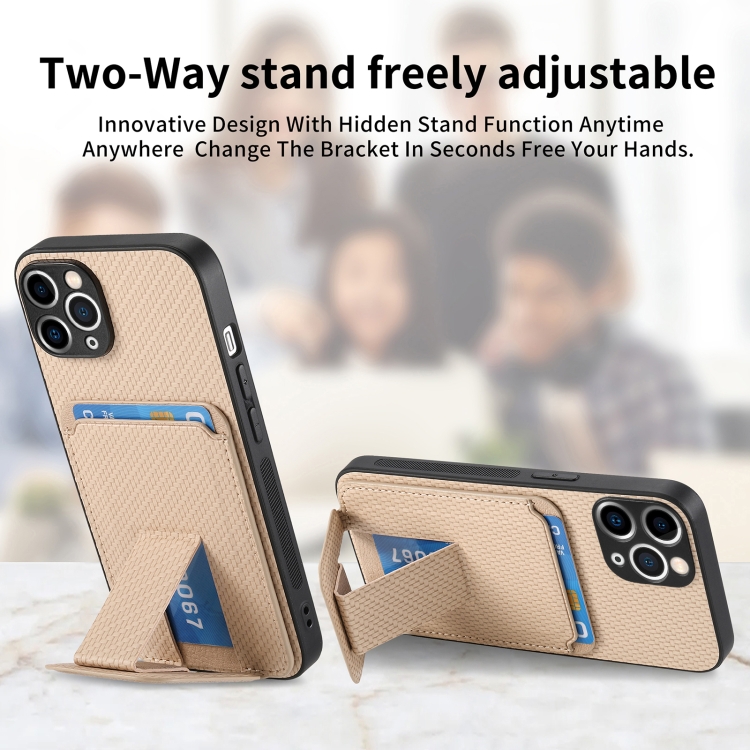 Funda para Teléfono iPhone 11 Pro Max con Soporte Plegable y Bolsa para Tarjetas Fibra de Carbono (Caqui)