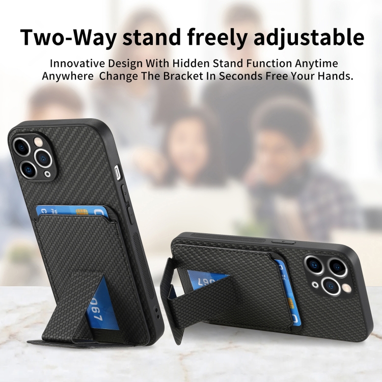 Funda para Teléfono iPhone 11 Pro Max Soporte Plegable Bolsa para Tarjetas Fibra de Carbono (Negro)