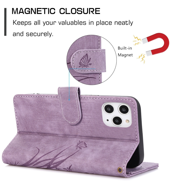 Funda para Teléfono iPhone 11 Pro Max Cuero Relieve Mariposa Orquídea (Púrpura)