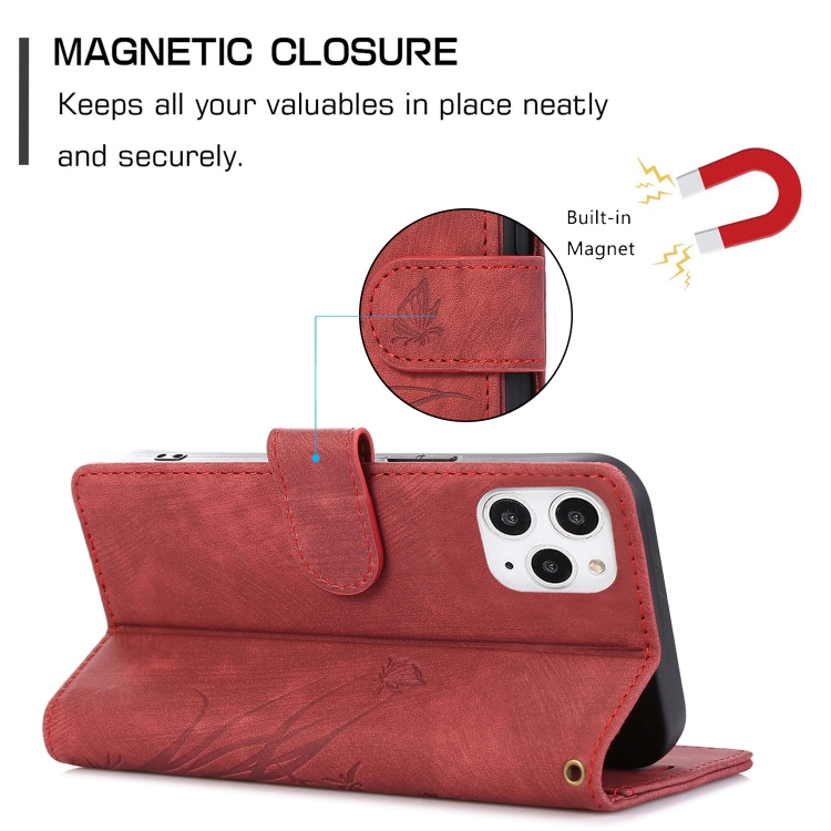 Funda para Teléfono iPhone 11 Pro Max Cuero Relieve Mariposa Orquídea (Rojo)