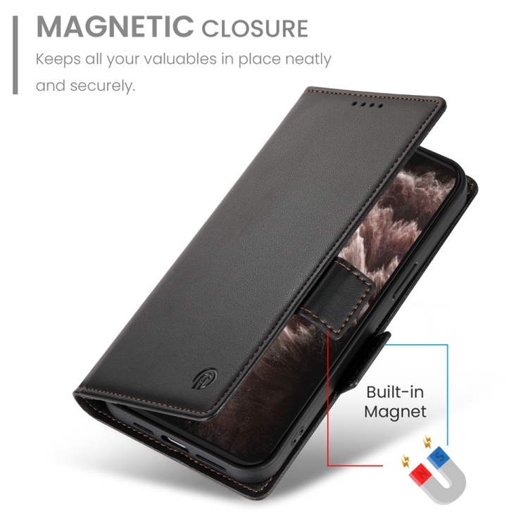 Funda para Teléfono iPhone 11 Pro Max Cuero Esmerilado Magnética con Hebilla Lateral (Negro)
