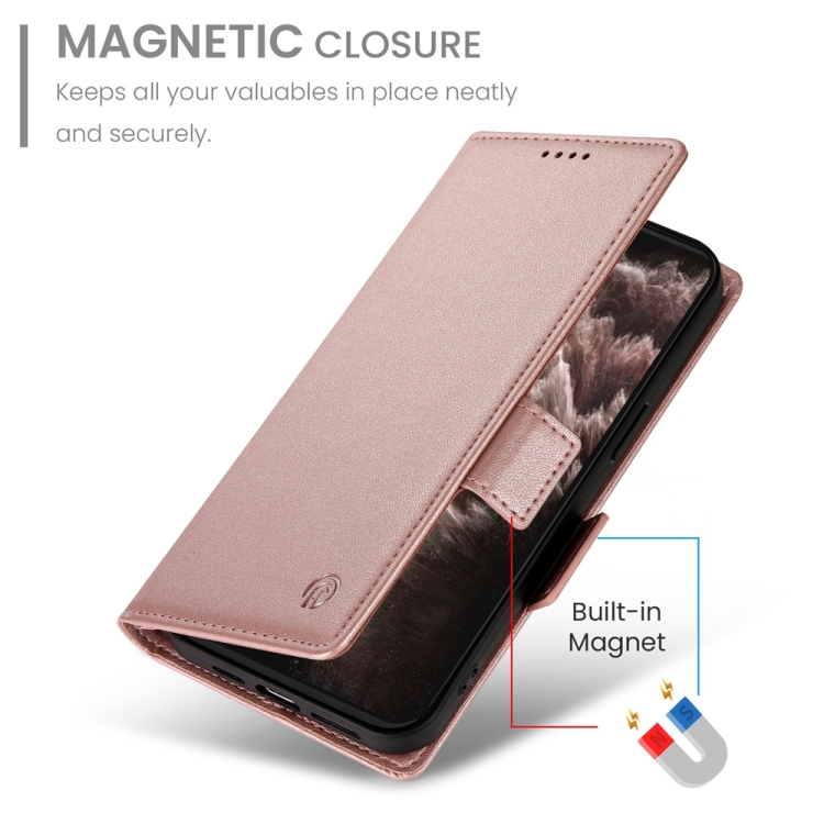Funda para Teléfono iPhone 11 Pro Max Cuero Esmerilado Magnético Hebilla Lateral (Oro Rosa)