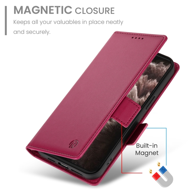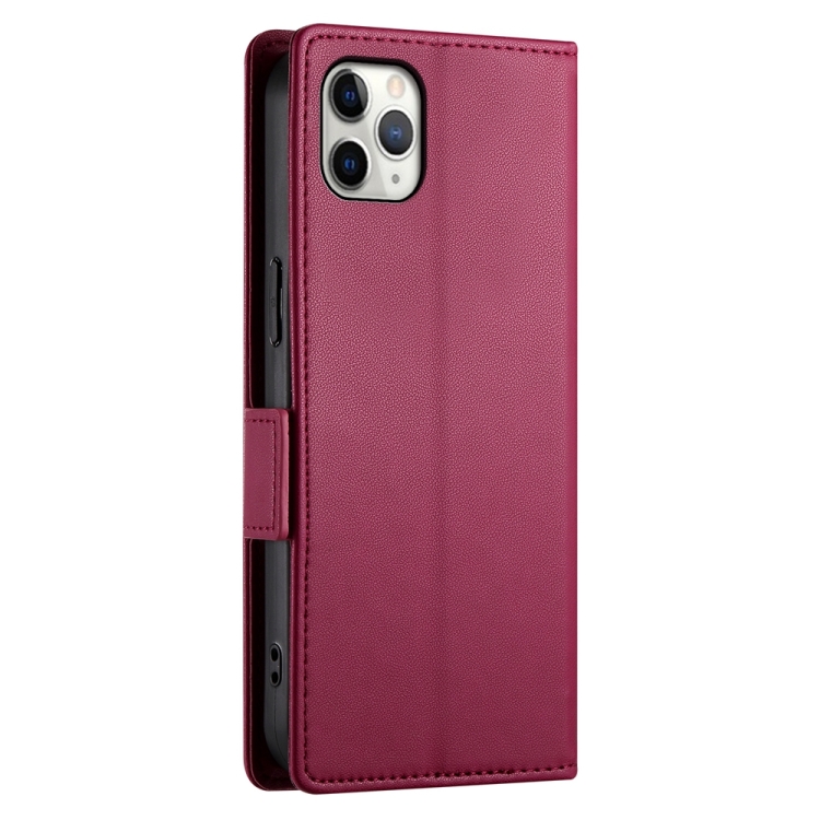 Funda para Teléfono iPhone 11 Pro Max Cuero Esmerilado Magnético con Hebilla Lateral (Rojo Vino)