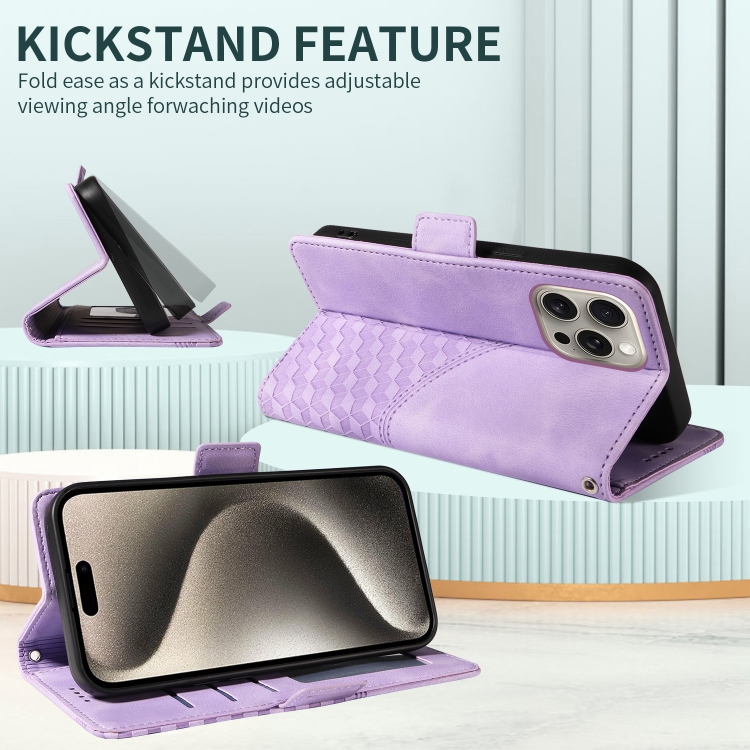 Funda para teléfono iPhone 11 Pro Max de Cuero Estrellado con Rombos en Relieve (Púrpura)