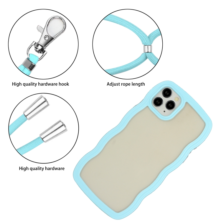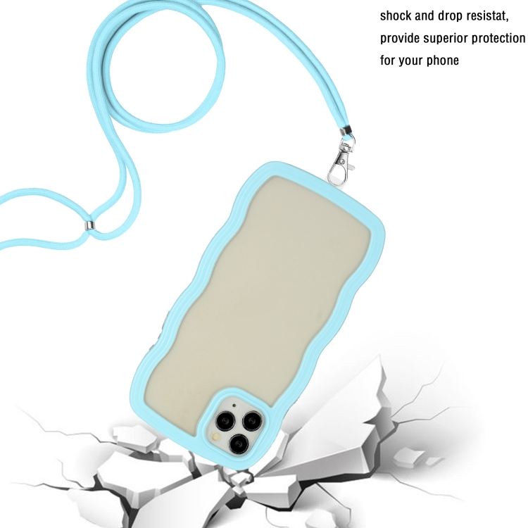 Funda para iPhone 11 Pro Max Lanyard Candy Color Wave TPU Clear PC (Azul)