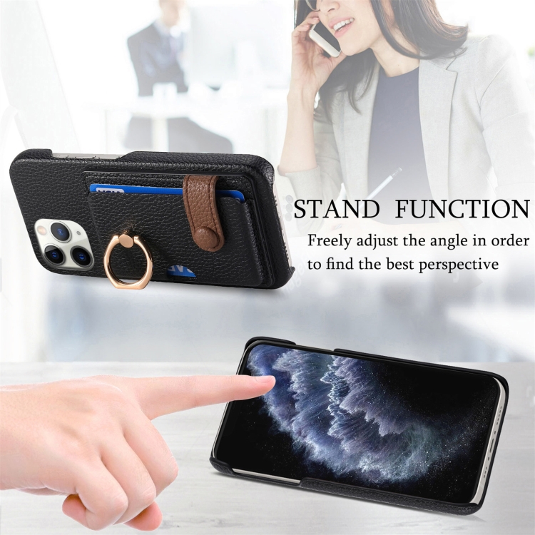 Funda para Teléfono iPhone 11 Pro Max Litchi Leather Oil Edge Ring Card Back (Negro)