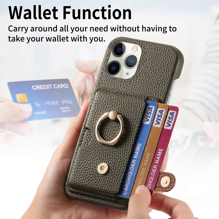 Funda para Teléfono iPhone 11 Pro Max Litchi Leather Oil Edge Ring Card Back (Verde)