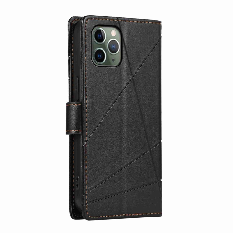 Funda para Teléfono iPhone 11 Pro Max PU con Línea En Relieve Textura Cuero Genuino (Negro)