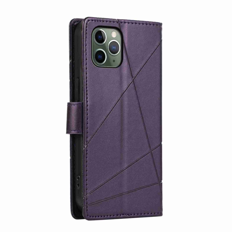 Funda para Teléfono iPhone 11 Pro Max PU con Línea en Relieve y Textura de Cuero Genuino (Púrpura)
