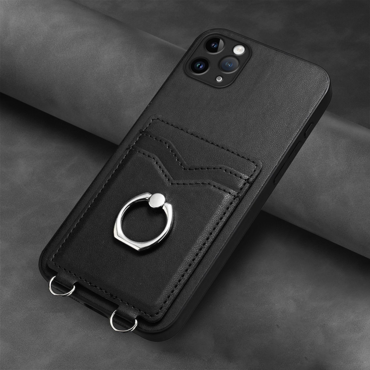 Estuche para Teléfono iPhone 11 Pro Max R20 con Soporte para Tarjeta y Anillo (Negro)