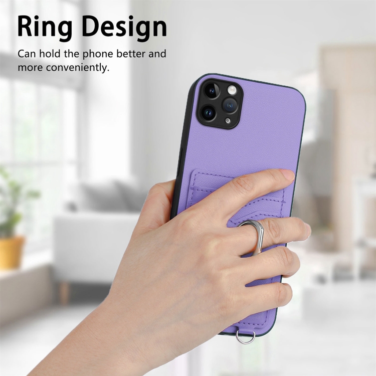 Estuche para Teléfono iPhone 11 Pro Max R20 Soporte Tarjeta Anillo (Púrpura)