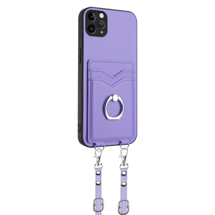 Funda para Teléfono iPhone 11 Pro Max R20 con Soporte para Tarjeta y Anillo de Cuerda Cruzada (Púrpura)
