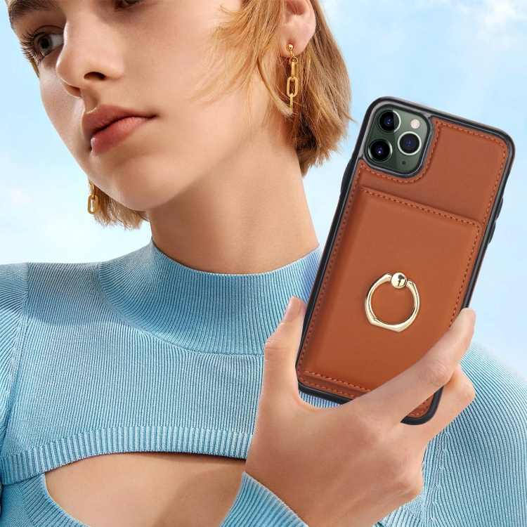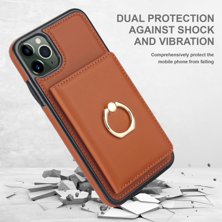 Funda para Teléfono iPhone 11 Pro Max Rfid con Soporte para Anillo y Tarjeta (Marrón)