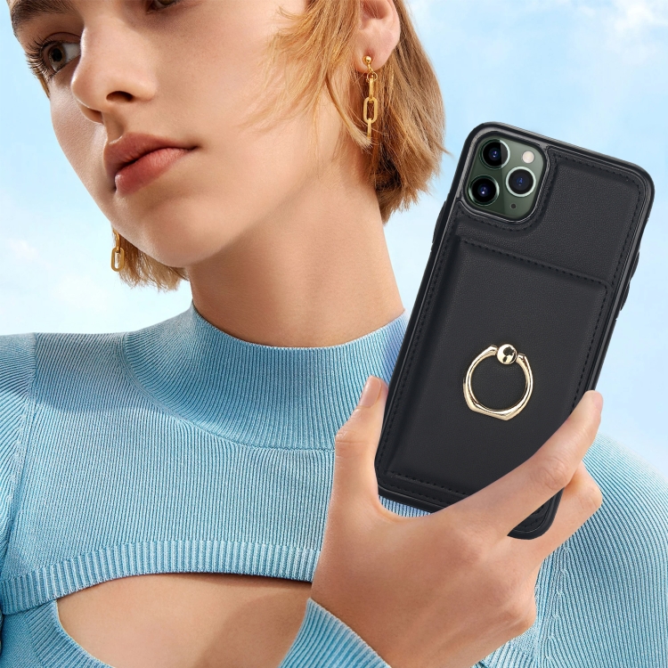 Funda para Teléfono iPhone 11 Pro Max Rfid con Soporte para Anillo y Tarjeta Antirrobo (Negro)