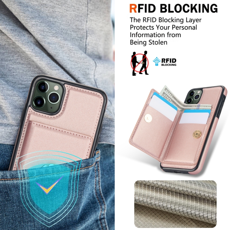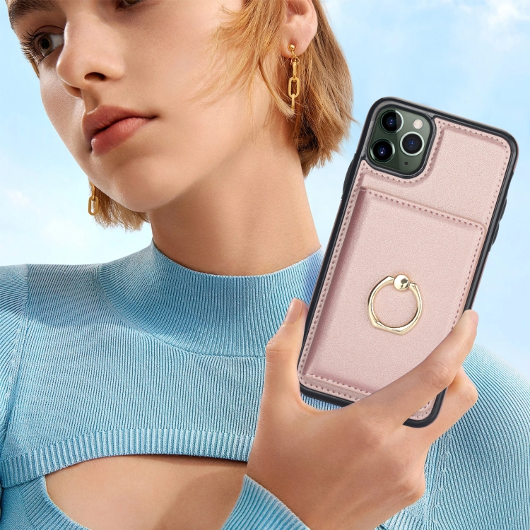 Funda para Teléfono iPhone 11 Pro Max Rfid con Soporte para Anillo y Tarjeta Antirrobo (Oro Rosa)