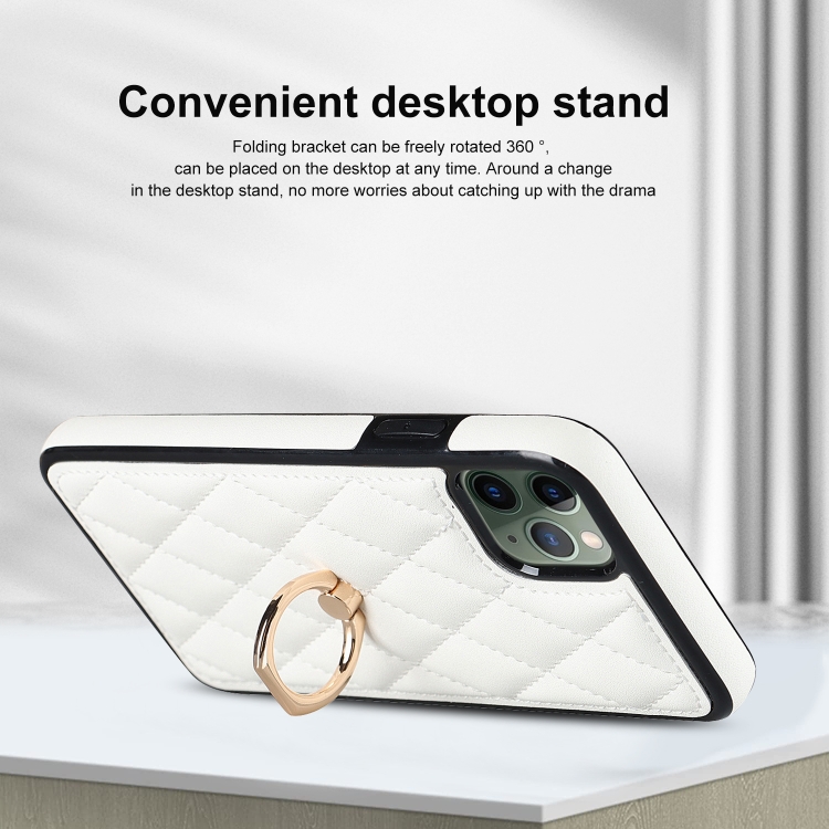 Funda para iPhone 11 Pro Max Rhombic PU Cuero con Soporte para Anillo (Blanco)